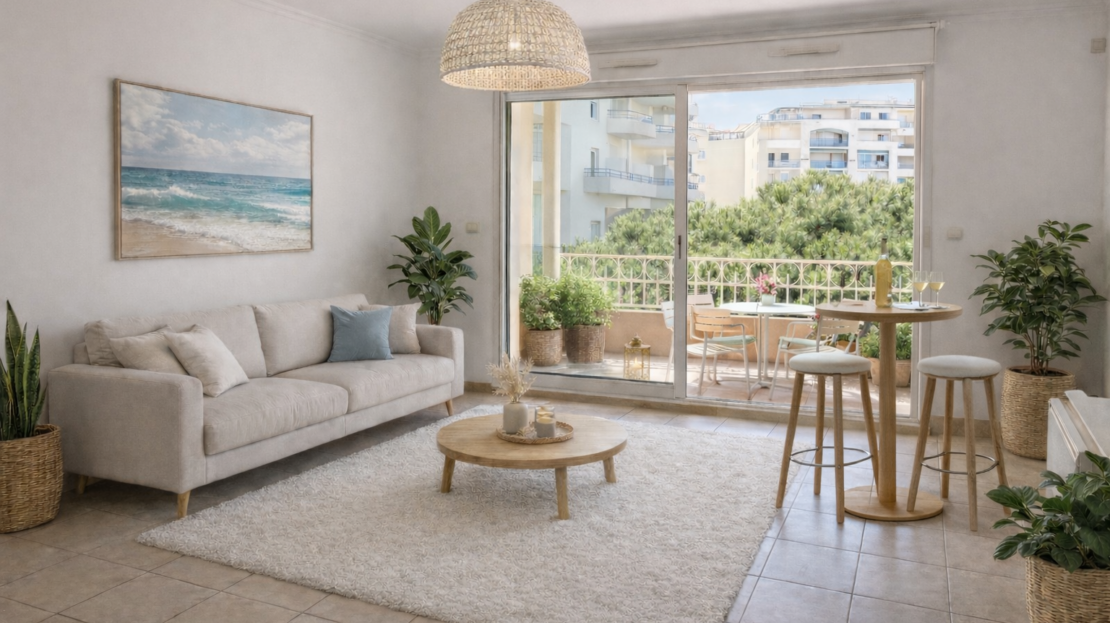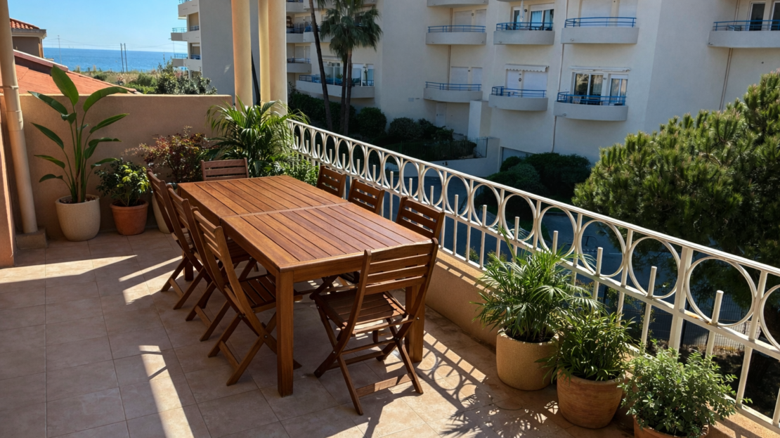 Bel appartement type F1 récemment rénové avec grande terrasse vue mer latérale,